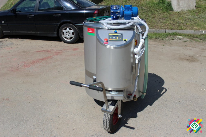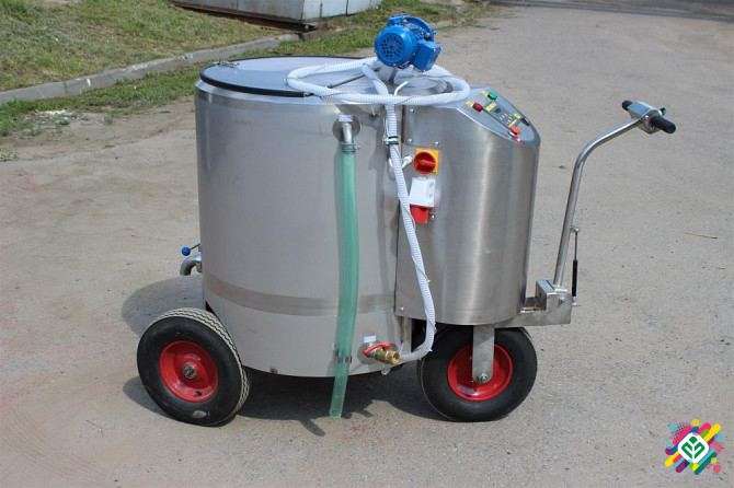 **Назва:** Портативне молочне таксі МТПЕ-350 **Технічні характеристики:** - Тип: портативний - Об'єм ємності: 350 л - Діапазон нагріву молока: 60 - 85°C - Напруга живлення: 380 В - Частота струму: 50 Гц - Потужність нагрівальних елементів: 9 кВт - Потужність мотор-редуктора: 0,12 кВт - Габаритні ро...