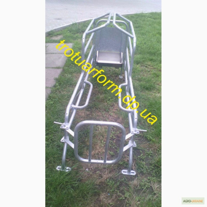 1) Станок полностью повторяет контур животного.2) Станок имеет несколько пар защитных дуг. Одна пара, жестко вварена в конструкцию станка, вторая пара - подвижная.3) Наличие специального кронштейна (лапа) дает возможность регулировать станок по длине, тем же упрощает заграждение или выгон животного....