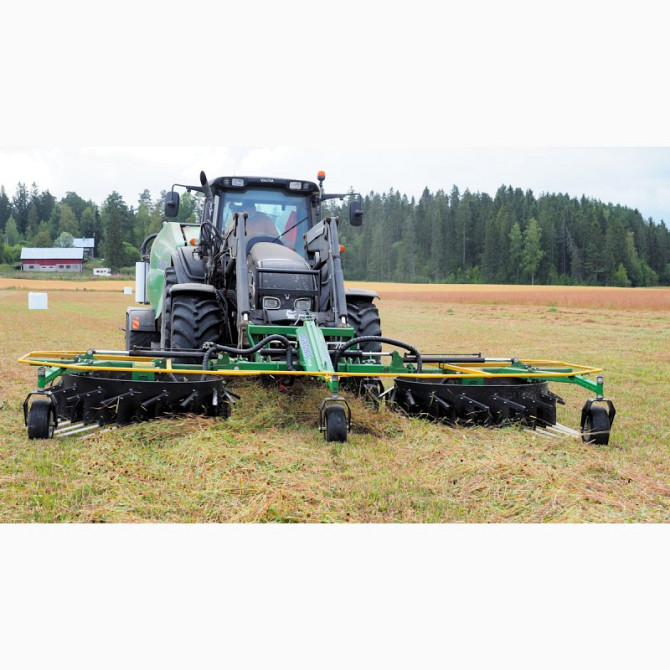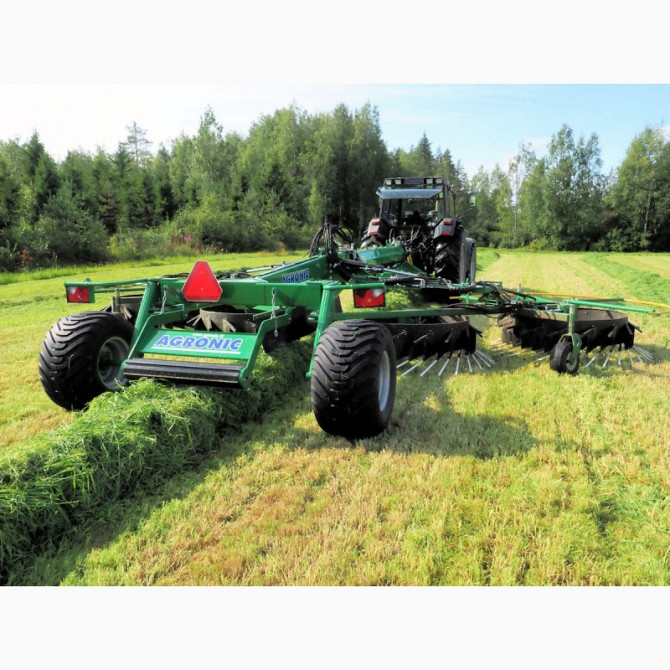 Валкообразователи Agronicс гидравлическим приводомУстанавливаются на навескутрактора(переднюю или заднюю) или на фронтовой загрузчик с помощью Евро-адаптера. В отличии от металлических, полиамидные зубья имеют долгий срок службы, их не нужно менять из-за износа.Гибкие полиамидные зубья очень устойчи...