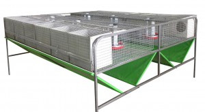 Клетка для кроликов маточно-откормочная, одноярусная. 1 ярусклеток. 12 родильных боксов. КомплектацияСистема поения.Кормушкис увеличенным сектором кормления.Отбойники навозоудаления – 2 шт.Регулируемые ножки по высоте. Предназначена для содержания 12 кролематок скрольчатамидо 35 дней или для откорма...