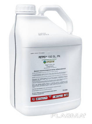 Десикант Ретро 150, р. к. - Універсальний десикант контактної дії для підсушування врожаю сільськогосподарських культур. Контактно-системний гербіцид суцільної дії для знищення бур'янів. Діюча речовина: Дикват дибромід. Препаративна форма: РК (розчинний концентрат). Хімічний клас: похідні біпіриди...