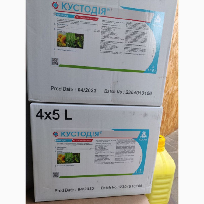Кустодія КС є системним фунгіцидним препаратом, який проникає в усі частини рослин для захисту зернових та олійних культур від грибкових захворювань, що вражають наземну частину рослини. Діючі речовини: тебуконазол 200 г/л, азоксистробін 120 г/л. Препаративна форма: концентрат емульсії. Тип дії: сис...