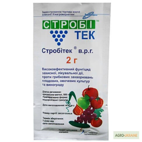 **Фунгіцид Стробі2 г - 15.80 грн** Виробник: "Хімагромаркетинг" (Україна) Діюча речовина: крезоксим-метил, 500 г/кг. Препаративна форма: водно-дисперговані гранули. **Опис продукту:** Стробі відноситься до нового класу фунгіцидів та має широкий спектр дії проти грибкових захворювань. Цей пре...