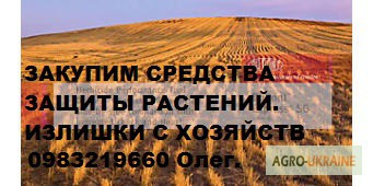 Швидко викупимо Ваші гербіциди, фунгіциди, інсектициди, протравники, купимо агрохімію. Швидко викупимо Ваші засоби захисту рослин - оригінали та генерики, швидко і надійно. Для всіх питань звертайтеся за телефоном 0671362044 до Анатолія. Наша компанія спеціалізується на викупі різноманітних агрохі...