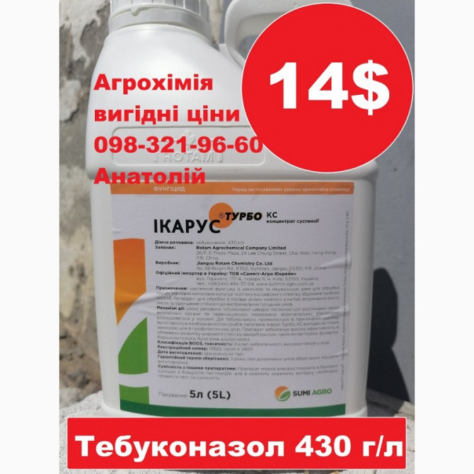 Фунгіцид Ікарус турбо від SumiAgro пропонується за найвигіднішою для вас ціною - 14$ (570 грн/л). Доставка по всій Україні безкоштовна. Надсилаємо без передоплат та авансів. У нас ви знайдете лише оригінальні препарати - не з Китаю! Знижки обговорюються індивідуально. Розпродаж залишків. Також у ная...