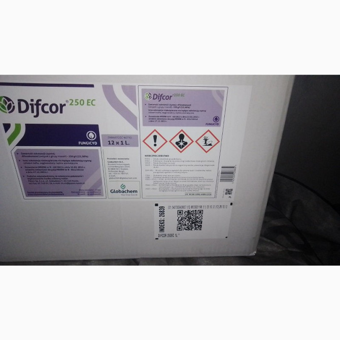 Фунгіцид Дифеноконазол, комерційно відомий як ДІФКОР, є препаратом для позакореневої обробки плодових і овочевих культур. Виробником цього препарату є компанія Globachem nv. **Характеристики препарату:** - **Призначення:** фунгіцид - **Хімічний клас препарату:** 3 - **Основна діюча речовина:** Дифе...