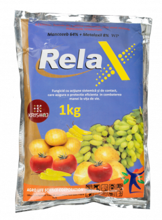 **Релакс** - високоефективний фунгіцид для захисту помідорів, огірків, картоплі та винограду від комплексу хвороб. **Релакс** є комбінованим препаратом, що складається з металаксилу і манкоцеба, які володіють різними механізмами дії, що істотно знижує ризик виникнення резистентності. **Хімічний кла...