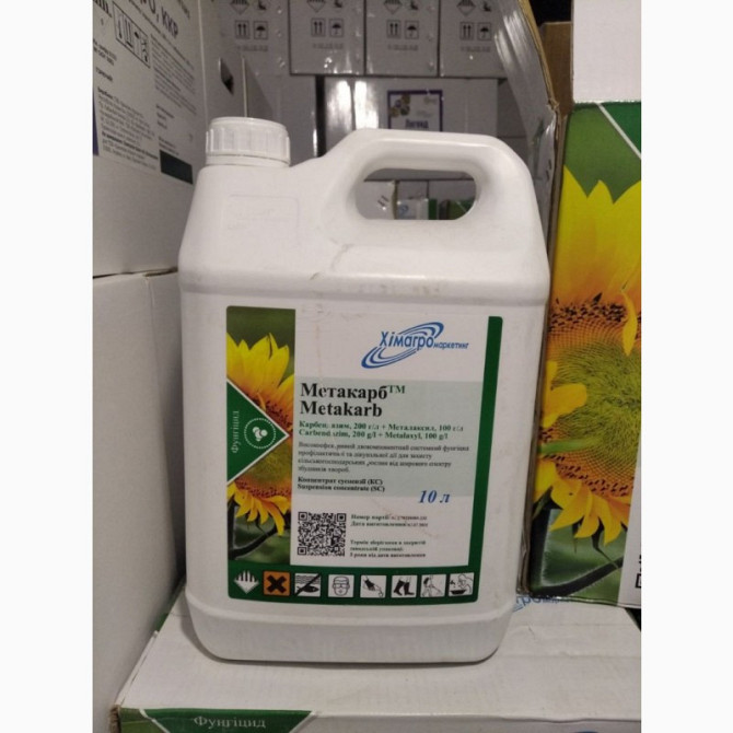 **Метакарб** - високоефективний двокомпонентний системний фунгіцид профілактичної та лікувальної дії для захисту сільськогосподарських рослин від широкого спектру збудників хвороб. **Діюча речовина:** карбендазим, 200 г/л + металаксил, 100 г/л **Спосіб дії:** системний **Препаративна форма:** к...