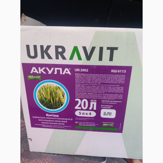 Фунгіцид "Акула" є інноваційним засобом профілактичної, лікувальної та викоренюючої дії проти широкого спектру хвороб зернових колосових культур. Діючі речовини: Прохлораз - 300 г/л, тебуконазол - 140 г/л, ципроконазол - 50 г/л. Формуляція: концентрат емульсії. Культури, на яких застосовується: зерн...