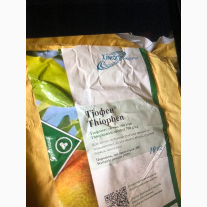 Контактно-системний фунгіцид Тіофен застосовується для лікувально-профілактичних цілей у садах, виноградниках та овочевих культурах. Діюча речовина - Тіофанат-метил у концентрації 700 г/кг. Тип дії - системно-контактний. Препарат оригінальний - Топсин М. Упаковка - 10 кг, ціна вказана за 1 кг. Кул...