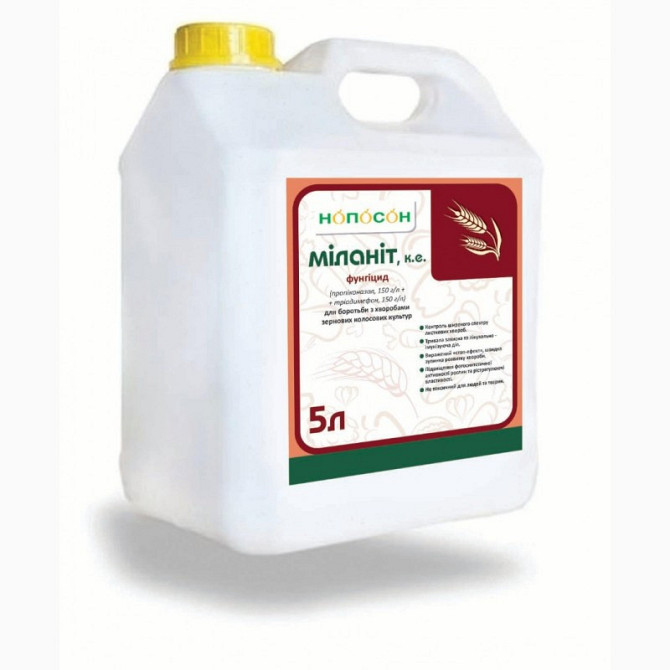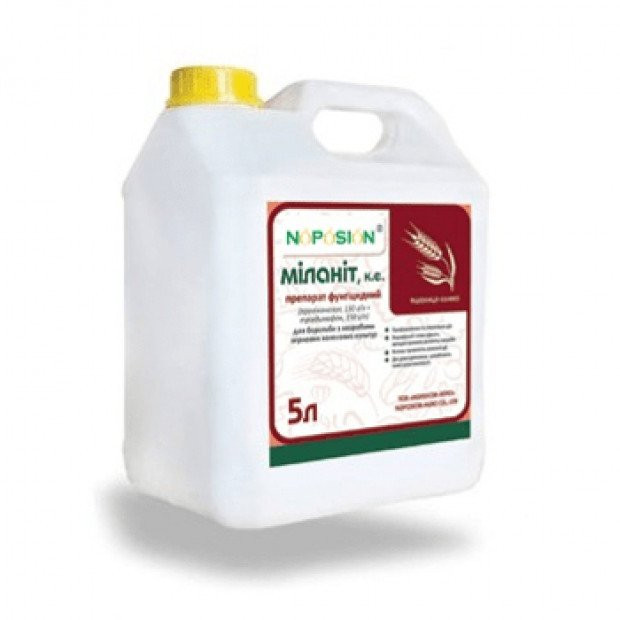 **Міланіт® - СИСТЕМНИЙ ДВУХКОМПОНЕНТНИЙ ФУНГІЦИД ДЛЯ ЗАХИСТУ ТА ПРОФІЛАКТИКИ КОМПЛЕКСУ ХВОРОБ ЗЕРНОВИХ КУЛЬТУР** Діюча речовина: Пропіконазол, 150 г/л + триадимефон, 150 г/л Форма випуску: концентрат емульсії **ПЕРЕВАГИ:** • Контроль широкого спектра листових хвороб. • Тривала захисна та л...