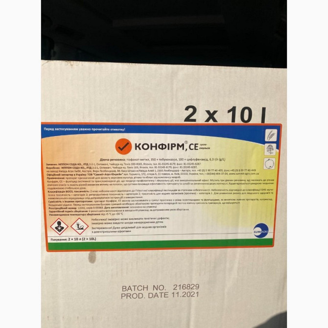 **КОНФІРМ® СЕ: Трьохкомпонентний фунгіцид для захисту польових культур та саду від хвороб** **Діючі речовини:** тіофанат-метил (350 г/л) + тебуконазол (100 г/л) + цифлуфенамід (6,3 г/л) **Препаративна форма:** суспензійна емульсія **Спосіб дії:** системна та трансламінарна дія, перерозподіл у газ...