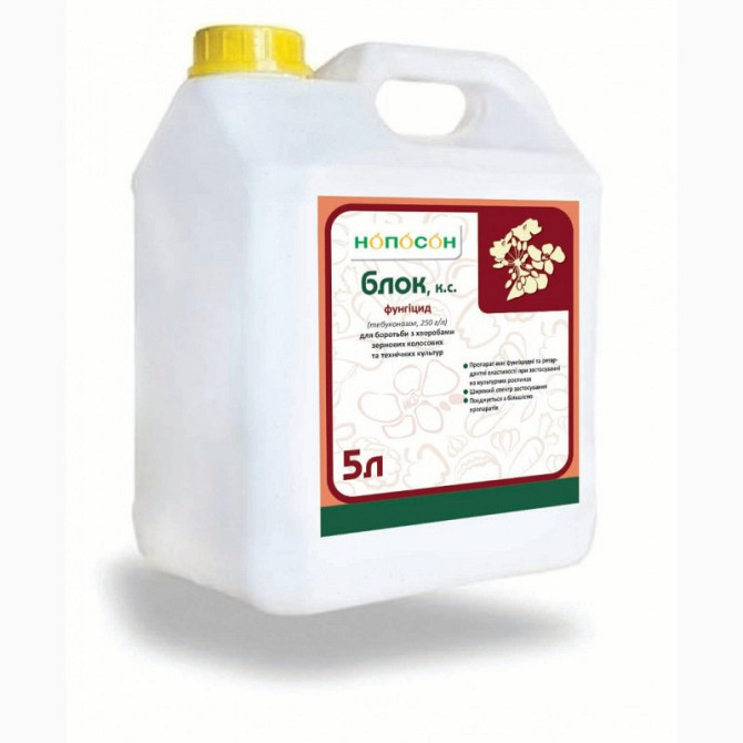 Блок - системний фунгіцид, призначений для контролю найважливіших захворювань зернових культур, цукрових буряків, ріпаку, сої та виноградників. Діюча речовина: тебуконазол, 250 г/л. Препаративна форма: концентрат суспензії. Виробник: Нопосон-Агро. Тара: каністра 5 л, ціна зазначена за 1 л. Переваги...