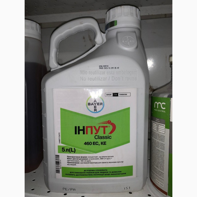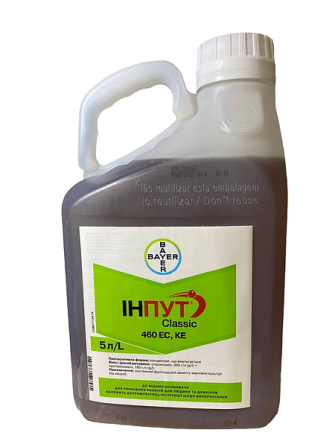 **Інпут® Classic** - фунгіцид нового покоління, призначений для контролю широкого спектру хвороб пшениці та ячменю. **Характеристики:** - Діючі речовини: спіроксамін - 300 г/л + протіоконазол - 160 г/л - Препаративна форма: концентрат, що емульгується - Об'єм тари: 5 л (ціна вказана за 1 л) **Мех...
