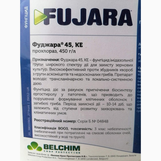 Фунгіцид Фуджара - це фунгіцид широкого спектру дії, призначений для захисту зернових культур. Вміст діючої речовини: прохлораз, 450 г/л. Препаративна форма: концентрат емульсії. Норма витрати робочого розчину: 200-400 л/га. Упаковка: 5 л, ціна вказана за 1 л. Переваги Фуджара: - Має широкий спектр...