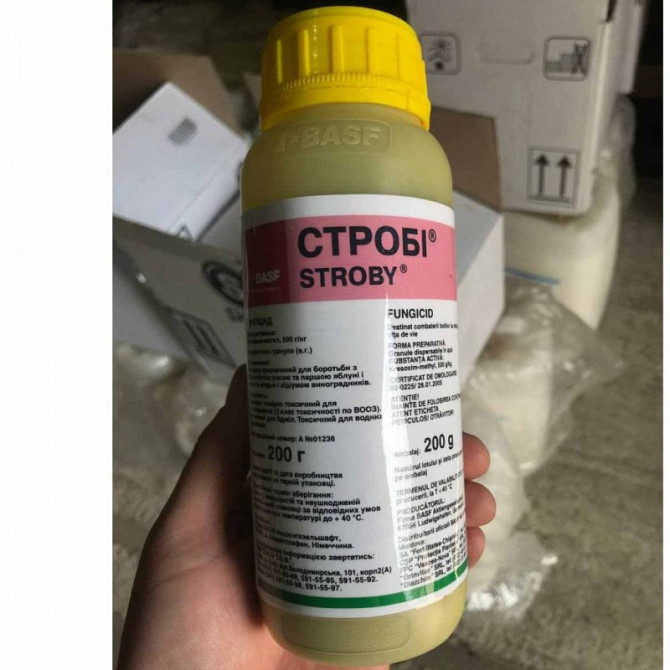 Фунгіцид Strobi використовується для профілактики та лікування різних грибкових захворювань, які поразили овочеві, фруктові та квіткові культури. **Характеристики продукту:** - **Активна речовина:** крезоксим-метил, 500 г/кг - **Форма випуску:** гранули - **Упаковка:** 200 г Strobi можна використ...