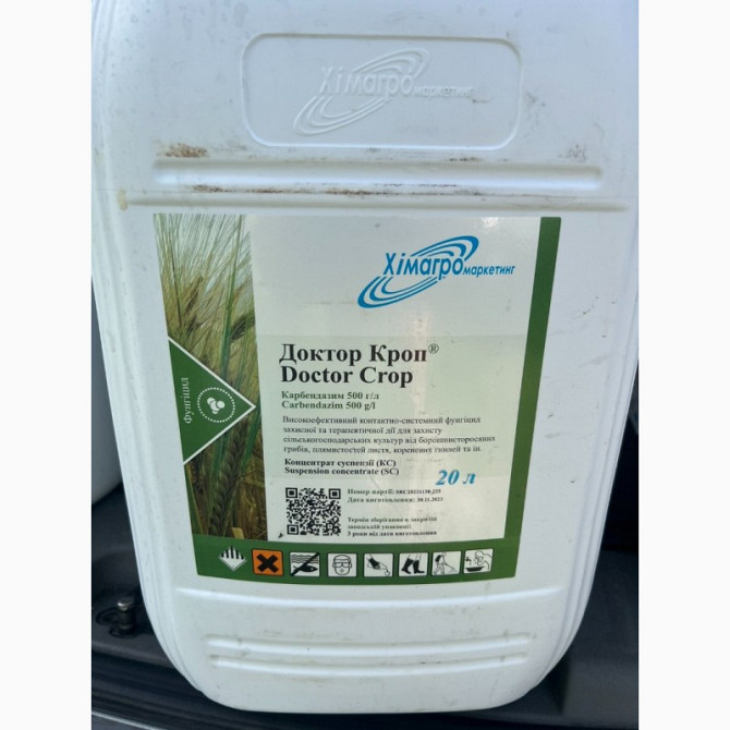 Доктор Кроп (аналог Дерозал) є високоефективним фунгіцидом системно-контактної дії для захисту широкого кола сільськогосподарських культур від борошнисторосяних грибів, плямистостей листя та кореневих гнилей. Хімічний клас: бензимідазоли Діюча речовина: карбендазим, 500 г/л Препаративна форма: кон...