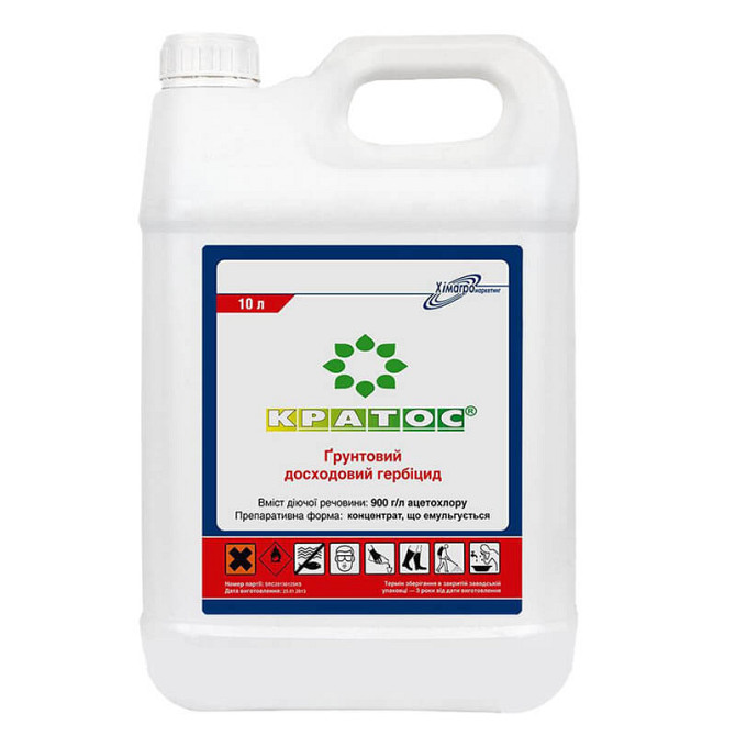 Гербіцид Кратос KE (Ацетохлор 900 г/л) є аналогом Харнесу та призначений для контролю однорічних злакових та двокотильних бур'янів у вирощуванні соняшнику, кукурудзи, сої та інших економічно важливих культур. **Характеристики продукту:** - Діюча речовина: ацетохлор, 900 г/л - Хімічний клас: хлорац...