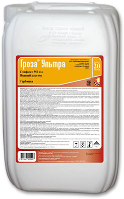 **Гербіцид "Гроза Ультра, ВР"** **Застосування:** Гербіцид суцільної дії для боротьби з широким спектром однорічних і багаторічних бур'янів і деревно-кустарникової рослинності. Призначений для використання в аграрному секторі, а також на землях несільськогосподарського призначення. **Діюча речовин...