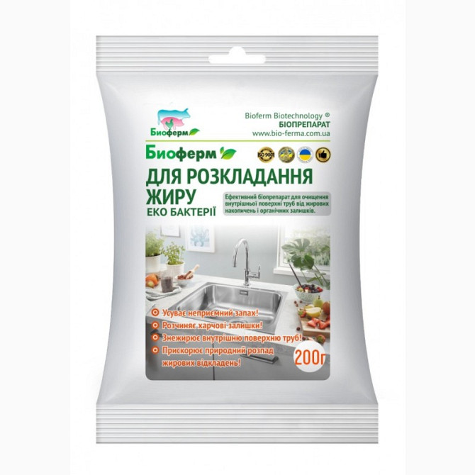 Ефективний біопрепарат для розкладання жиров - усуває неприємні запахи, прискорює природний розклад жирових відкладень, розчиняє залишки їжі, скорочує накопичення жиру. 100 г - 100 грн 200 г - 200 грн 500 г - 475 грн 1 кг - 950 грн БІОФЕРМ - комплекс ефективних мікроорганізмів та ферментів, які вик...