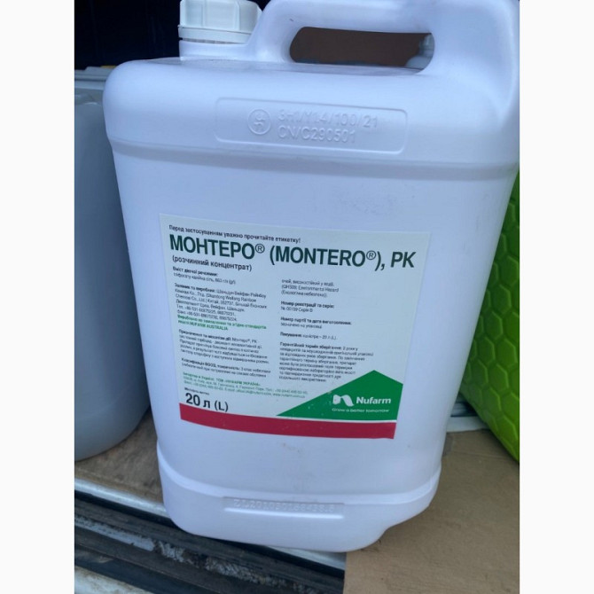 **МОНТЕРО® ГЕРБІЦИД** **Діюча речовина:** калійна сіль гліфосату, 663 г/л (у кислотному еквіваленті – 540 г/л) **Препаративна форма:** розчинний концентрат (SL) - розчинний концентрат. **Упаковка:** 20 л, ціна вказана за 1 л. **Переваги:** - Швидке проникнення в рослини бур'янів, що забезпечує в...