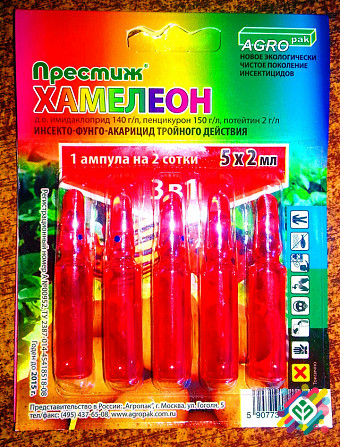Перевірте оновлений текст: Переваги засобу від комах Престиж Хамелеон 5 амп.: - Системна дія та виражена контактна активність - Ідеальний партнер для бакової суміші з піретроїдами - Можливість застосування в бакових сумішах з фунгіцидами - Висока активність проти широкого спектру шкідливих комах та...