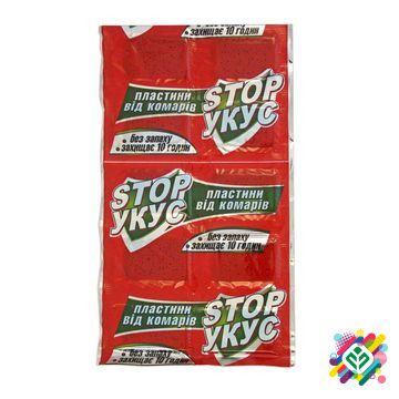 Пластины від комарів "Стоп Укус", на алюмінієвій основі, надійно захищають всю родину від кровосисних комах, таких як комарі, мокриці, москіти. Діючою речовиною застосовано новітній інсектицид четвертого покоління "Трансфлутрин", який менш токсичний і безпечніший, ніж раніше використовувані інсектиц...