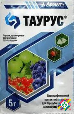 Високоефективний контактний акарицид проти широкого спектру рослиноїдних кліщів з тривалим періодом захисної дії. Препарат Таурус застосовується на овочевих та плодово-ягідних культурах, протягом 2-х годин повністю знищує кліщі незалежно від їх стадії розвитку. Також засіб не викликає резистентності...