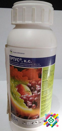 Контактний акарицид, призначений для інтегрованої системи захисту яблуні, винограду та хмелю від комплексу рослиноїдних кліщів. Діюча речовина: фенпіроксимат (50 г/л) Форма випуску: концентрат суспензії Основні переваги препарату Ортус: - Ортус викликає миттєвий параліч усіх рухливих стадій кліща т...