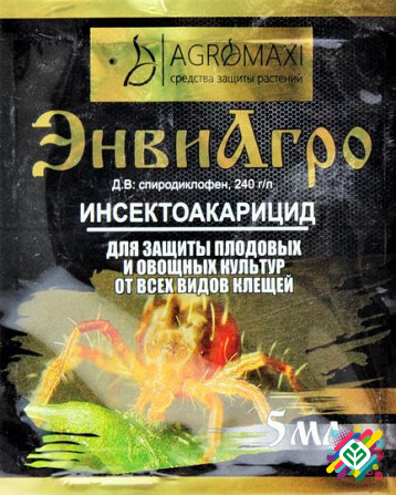 ЕнвіАгро - акарицид контактно-системної дії з широким спектром активності для захисту плодових та овочевих культур від рослиноїдних павутинних кліщів. Діюча речовина: спіродіклофен - 240 г/л. Препарат є ефективним завдяки контактній дії проти всіх стадій розвитку кліщів - яйця, личинки, протонімфи, ...