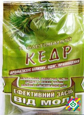 Таблетки проти молі від Cedar - це таблетоване ефективне засіб від молі. Це природний, екологічно чистий продукт з приємним ароматом. Цей препарат має відмінну профілактичну властивість, оскільки моль не сприймає аромати евкаліпта, лаванди, кедра та уникає місць, пропитаних цим запахом. Упаковка мі...