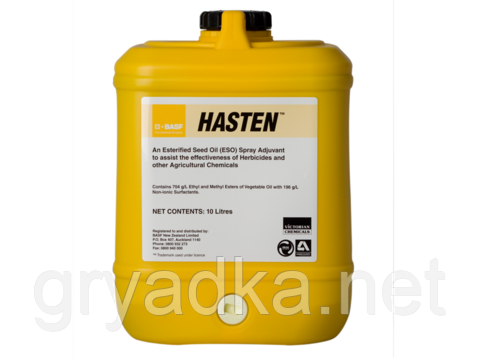 Хастен® ПАР є прилипачем, який призначений для підвищення ефективності засобів захисту рослин. Препаративна форма: концентрат емульсії. Діюча речовина: мінеральна олія та жирні кислоти. Виробник: BASF. Тарна одиниця: пластикова тара об'ємом 1 літр. Хастен® є прилипачем, який використовується для по...
