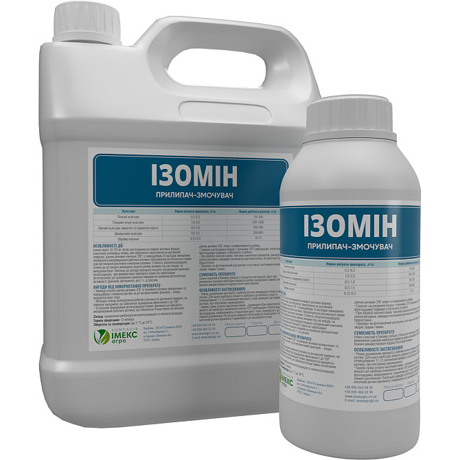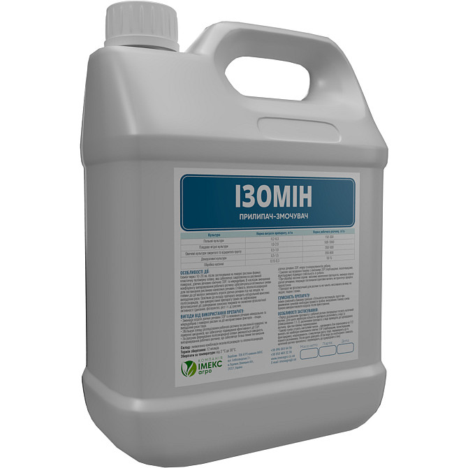 Ізомін - це препарат для покращення покриття та закріплення робочих розчинів засобів захисту, мікродобрив, стимуляторів росту на поверхні рослини, або насінині, а також з метою забезпечення їх стабільної роботи. Ізомін сумісний в бакових сумішах із більшістю пестицидів, проте при виникненні сумніві...