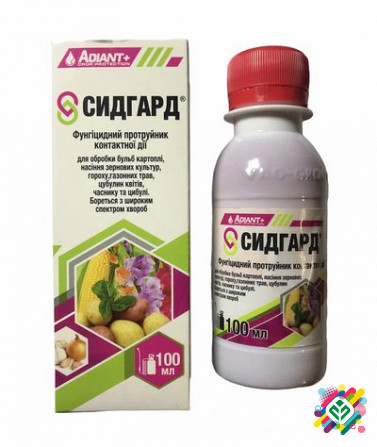 Упаковка 10мл, 100мл Сидгар - високоефективний фунгіцидний протравний засіб контактної дії з тривалим періодом захисту та широким спектром застосування. Діюча речовина - флудіоксоніл 25 г/л. Форма препарату: концентрат для обробки насіння. Культура та норми витрати: - Картопля: 10 мл на 125 мл вод...