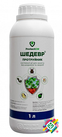 Упаковка містить 100 мл та 1 літр продукту. "Шедевр" - це найкращий інсектицидно-фунгіцидний препарат для обробки клубнів картоплі. Він надійно захищає клубні та молоді рослини картоплі від гризунів та шкідників з кусачо-сосучим ротовим апаратом, включаючи ґрунтових шкідників та хвороб росту. Діючі...