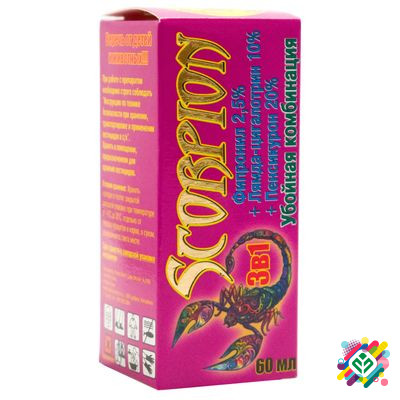 Упаковка: 10г, 60г Скорпіон 3 в 1 60г - інсекто-фунгіцидний протравник для картоплі та інших овочевих культур від комплексу шкідників (колорадський жук, личинки хруща, тля, дротянки, блошки, трипси) та хвороб (ризоктоніоз). Препарат стимулює ріст та розвиток рослин, підвищуючи врожайність. Скорпіон...