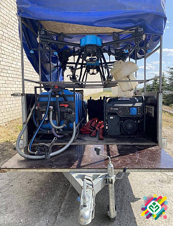 Продаємо готовий бізнес-комплект агродронів Agr-a22 (2 агродрони). У комплект входить: - Причіп, обладнаний під дрони - 2 агродрони Agr-a22 (один дрон обробив 2000 га, другий - новий!!!) - Генератор Hyundai 8 кВ - Генератор Agr с6000 - Бочка для змішування - Бочка для виливу хімії - 2 зарядні стан...