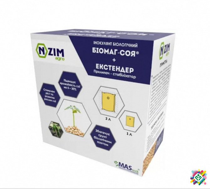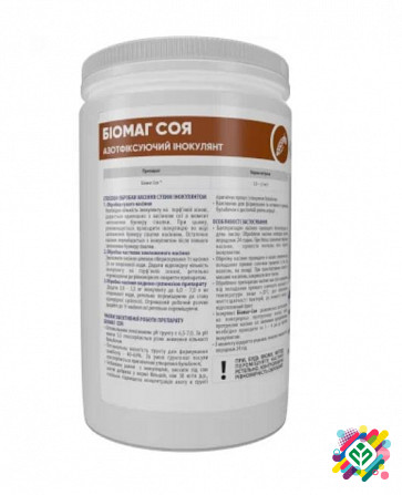 Сухий інокулянт для сої Азотфіксуючий інокулянт для сої "БіоМАГ Соя" - це сухий препарат для передпосівної інокуляції насіння сої на основі культури бульбочкових бактерій Bradyrhizobium japonicum штаму LZ 21 та LZ17-ГМ з титром не менше 2х10^9 КУО/г, бактерій Bacillus spp. з титром не менше 1х10^8 К...