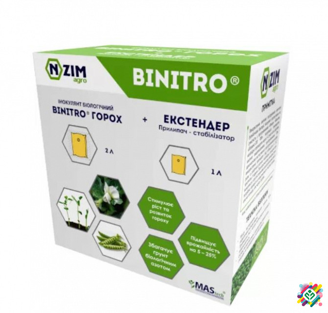 Інокулянт для гороху BiNitro Горох (Сочевиця, Віка, Кінські боби) Інокулянт для гороху «BiNitro Горох» - це двокомпонентний рідкий препарат, що складається з інокулянту та екстендера, призначений для передпосівної інокуляції насіння гороху, бобів, сочевиці та вики. В основі його складу - культура б...