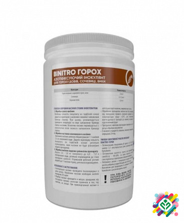Сухий інокулянт для гороху "BiNitro Горох" для гороху, бобів, сочевиці та вики Азотфіксуючий інокулянт для гороху "BiNitro Горох" - це сухий препарат для передпосівної інокуляції насіння гороху, бобів, сочевиці та вики на основі культури бульбочкових бактерій Rhizobium leguminosarum штаму RL 45 з т...
