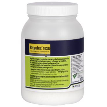 Regulex 10 SG (Регулекс) - регулятор росту на основі гібберелінів GA 4/7. Regulex 10 SG (Регулекс) є регулятором росту та розвитку рослин, який використовується для скорочення випадання плодів перед зборами, поліпшення їхнього кольору та збільшення розміру. Застосовується на яблуні. Regulex 10 SG (Р...