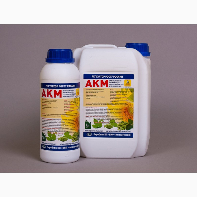 АКМ - це препарат, який використовується для виведення рослин з стресу, спричиненого неблагоприятними кліматичними умовами, такими як посушливість, висока та низька температура, а також вплив гербіцидів на культуру. Він має пролонгований стабілізуючий ефект. Підвищує врожайність та його якість, збіл...