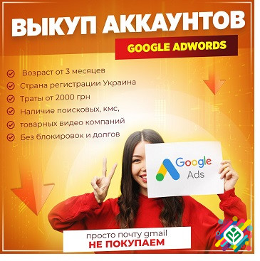 Придбання облікових записів Google AdWords Предметом оголошення є можливість купити обліковий запис Google AdWords, який використовується для запуску рекламних кампаній у мережі Інтернет. Облікові записи продаються з віком від 3 місяців та мають реєстрацію в Україні. Технічні характеристики обліко...