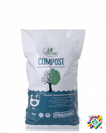Компост є натуральним та екологічно безпечним високоякісним добривом. Виготовлений на основі курячого навозу та органічних відходів аеробним процесом з збалансованим співвідношенням мікро- та макроелементів. Компост широко використовується в садівництві, овочівництві, виноградарстві, під час вирощу...