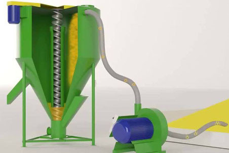 Комбікормовий міні-завод для виробництва збалансованого корму для великої рогатої худоби, свиней, птиці та інших сільськогосподарських тварин Комбікормовий міні-завод, що складається з зернодробарки, змішувача сипучого корму, вагового дозатора з пам'яттю на 10 рецептів, шлангу ПВХ, металевої насадк...
