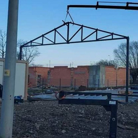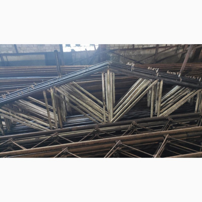 Продаються металеві трикутні ферми для ангарів. Кожна ферма має довжину 13 метрів та висоту по коньку 175 сантиметрів. Ціна однієї ферми складає 14500 гривень. Опорні колони мають довжину 6 метрів і виготовлені з труб діаметром 114 міліметрів і товщиною стінки 9 міліметрів. Ціна однієї колони станов...