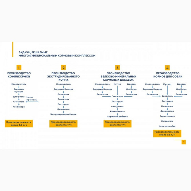 Характеристики технічного обладнання для виробництва комбікормів та преміксів: - Продуктивність: 1.5-2.5 тонн/год - Режим роботи: неперервний (півавтоматичний, автоматичний) - Час змішування: 4-6 хвилин - Коефіцієнт змішування: 93-98% Технічні особливості та різновиди включають наявність дозаторів...